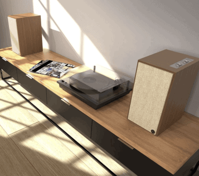 Powered speakers are compact, easy to use, and offer great value for money. They have a built-in amplifier inside the speaker cabinets and connect directly to your turntable or record player without the need for a standalone amplifier.