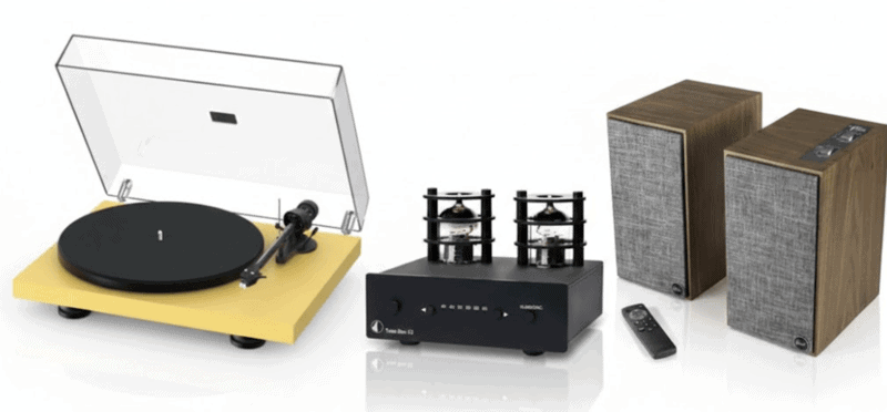 With this setup, we use the turntable and speakers from the amazing combo above and add in a standalone preamp based on tubes.