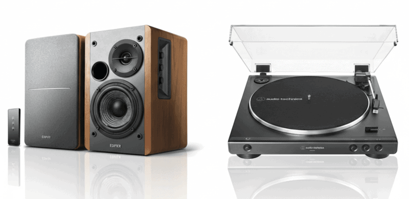 The Edifier R1280T is arguably the best powered speakers in the budget category. They look and feel much more expensive than they are. And the sound they produce is far better than what we can expect in this price range. They are loved by critics and owners, just as the AT-LP60X turntable.
